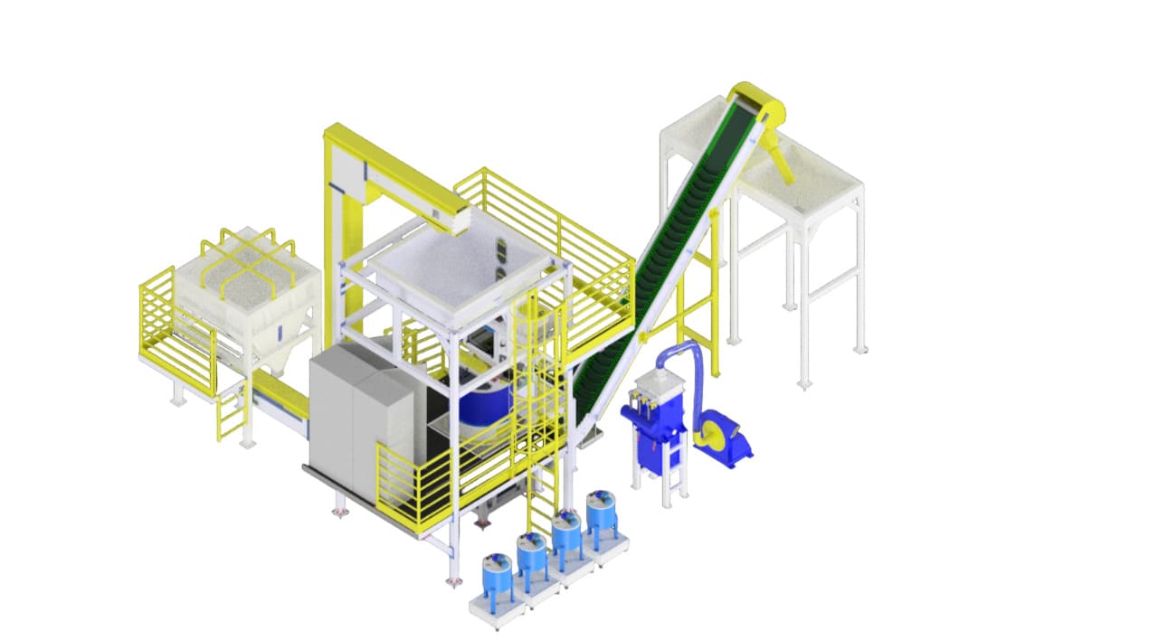 Este sistema automatizado é projetado para o tratamento, dosagem, balança de ensaque.